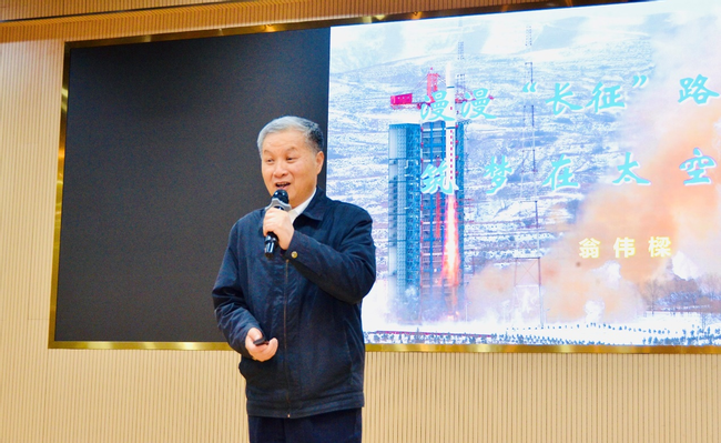 4月17日,全体学员一起参加了长征四号乙/丙运载火箭第二任总指挥翁伟樑研究员的特邀报告会。翁伟樑研究员以《漫漫“长征”路,筑梦在太空》的主题分享,鼓励同学们深刻领悟航天精神,在科研创新中追求卓越、勇攀高峰。