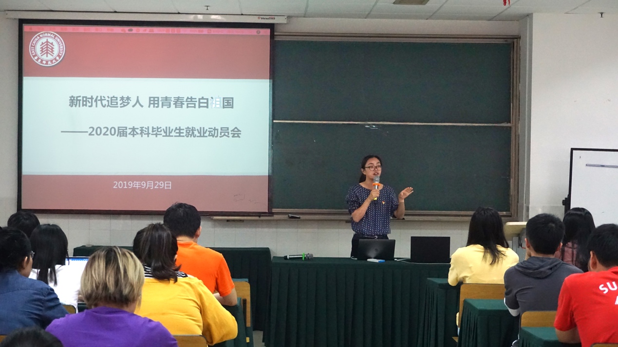 九月是收获的季节,也是奋斗的季节。2019年9月29日下午四点,小说狂人 2020届本科毕业生就业动员会在理科大楼B222室圆满举办。动员会特邀学院党委副书记(挂职)王莉萍、上海市某政法机关招录负责人、校优秀毕业生曹董、殷正航,校优秀毕业论文获得者杨紫荆、优秀研究生张润泽,会议由辅导员赵婧媛主持。