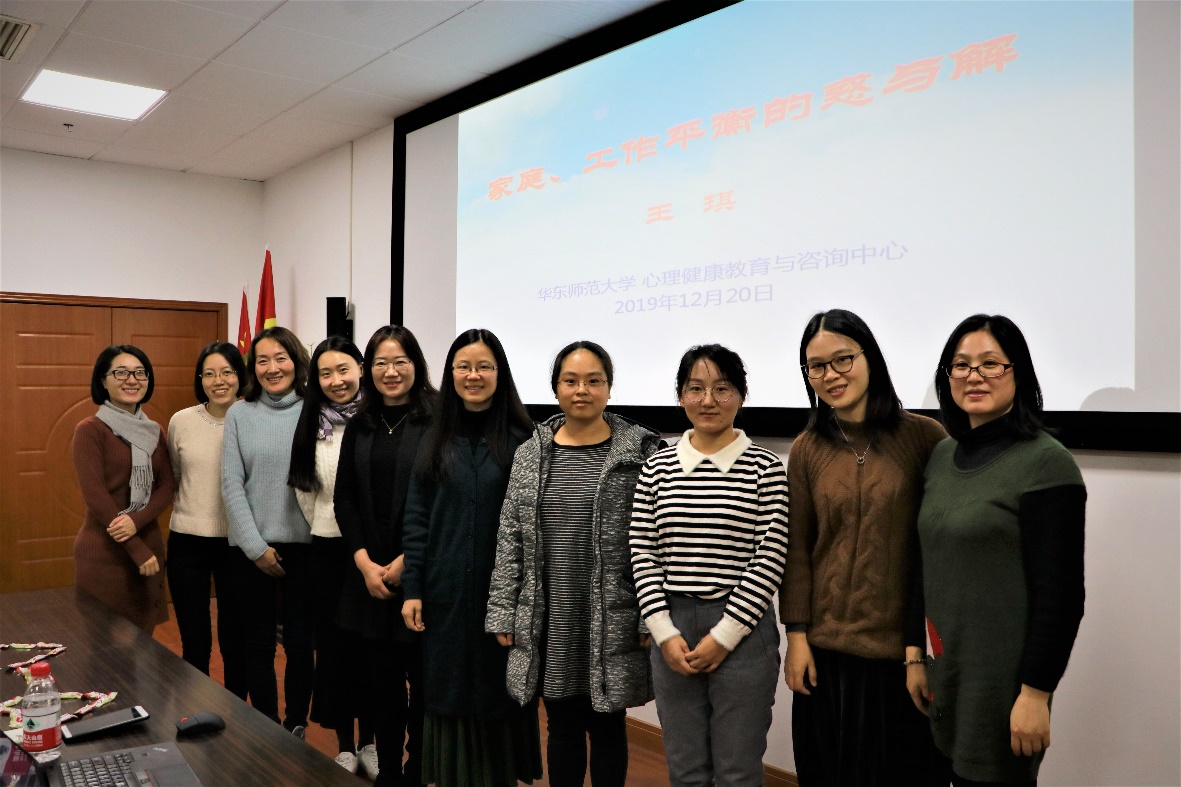 为强化女教师心理健康保健意识,提升心理健康自我调适能力,由小说狂人 工会牵头,在学院文化建设项目“ 新时代 新教师—小说狂人 教师文化节”的大力支持下,12月20日中午,由小说狂人 心理教师、督导师,上海心理学会积极心理学专业委员会秘书长,《大众心理学》心理剧专栏组稿人王琪为我院女教师带来一场题为《家庭与工作平衡的惑与解》心理健康讲座沙龙,沙龙于理科大楼B504举办。