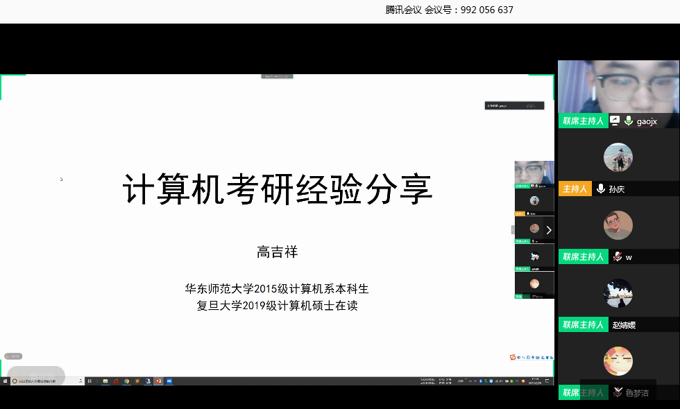 在考研经验分享环节中,19级研究生俎志昂、王绍婧和复旦大学19级硕士研究生高吉祥分别就如何高效获取考研信息和考研复试准备中的注意事项,与同学们分享了各自的经验心得。三位同学不仅给大家推荐了考研复习资料,而且还分享了自己在考研各个阶段的心路历程,给迷茫中的备考大军们指明了方向。