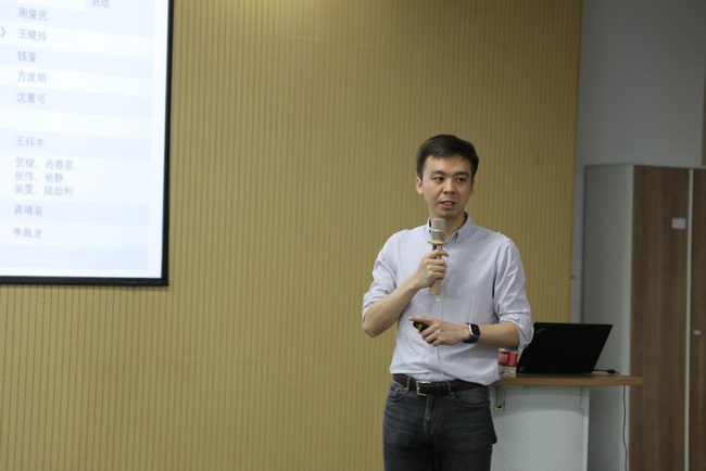 副院长徐飞通报本科教学相关工作,包括教改培育项目、毕业论文管理、培养方案修订、实践教学等方面的工作内容。