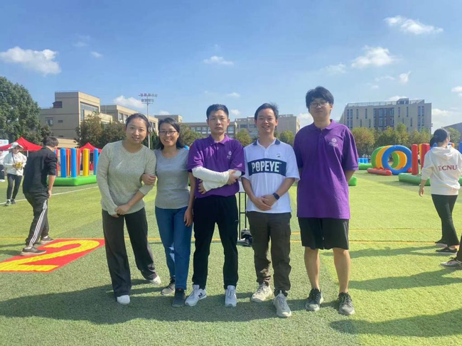 刘志、郭少阳、曹强、刘旦麟、高杨和张青六位老师合力完成了协力竞走项目,他们通力合作,协调动作,在整齐的口号声中顺利到达终点。该项目获得了三等奖。