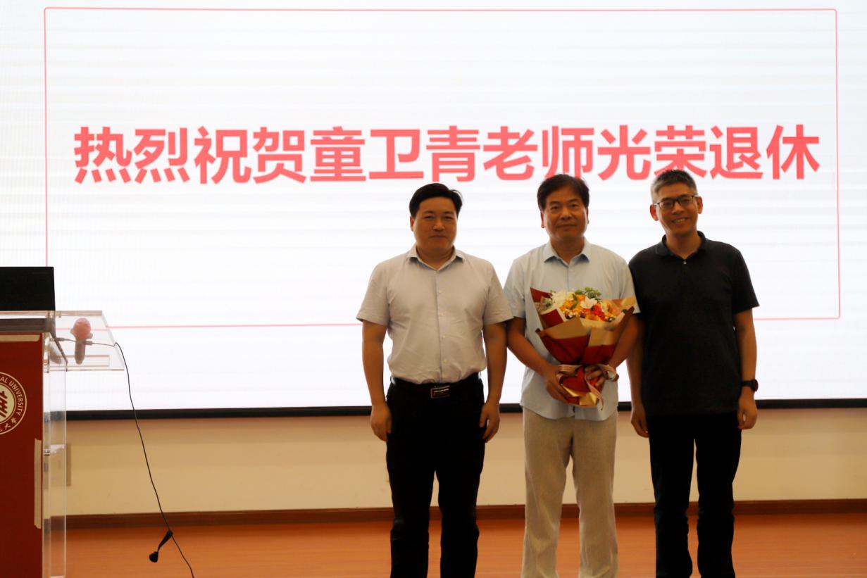 会议开始,工会为童卫青老师举办了荣休仪式,童老师分享了他的工作心得和体会,并表示,非常感谢学校和学院提供的平台,退休之后也会持续参与双创人才培养工作。