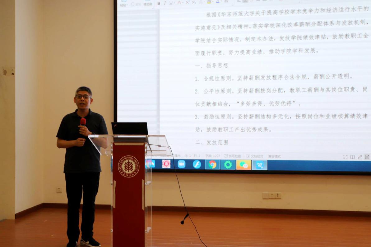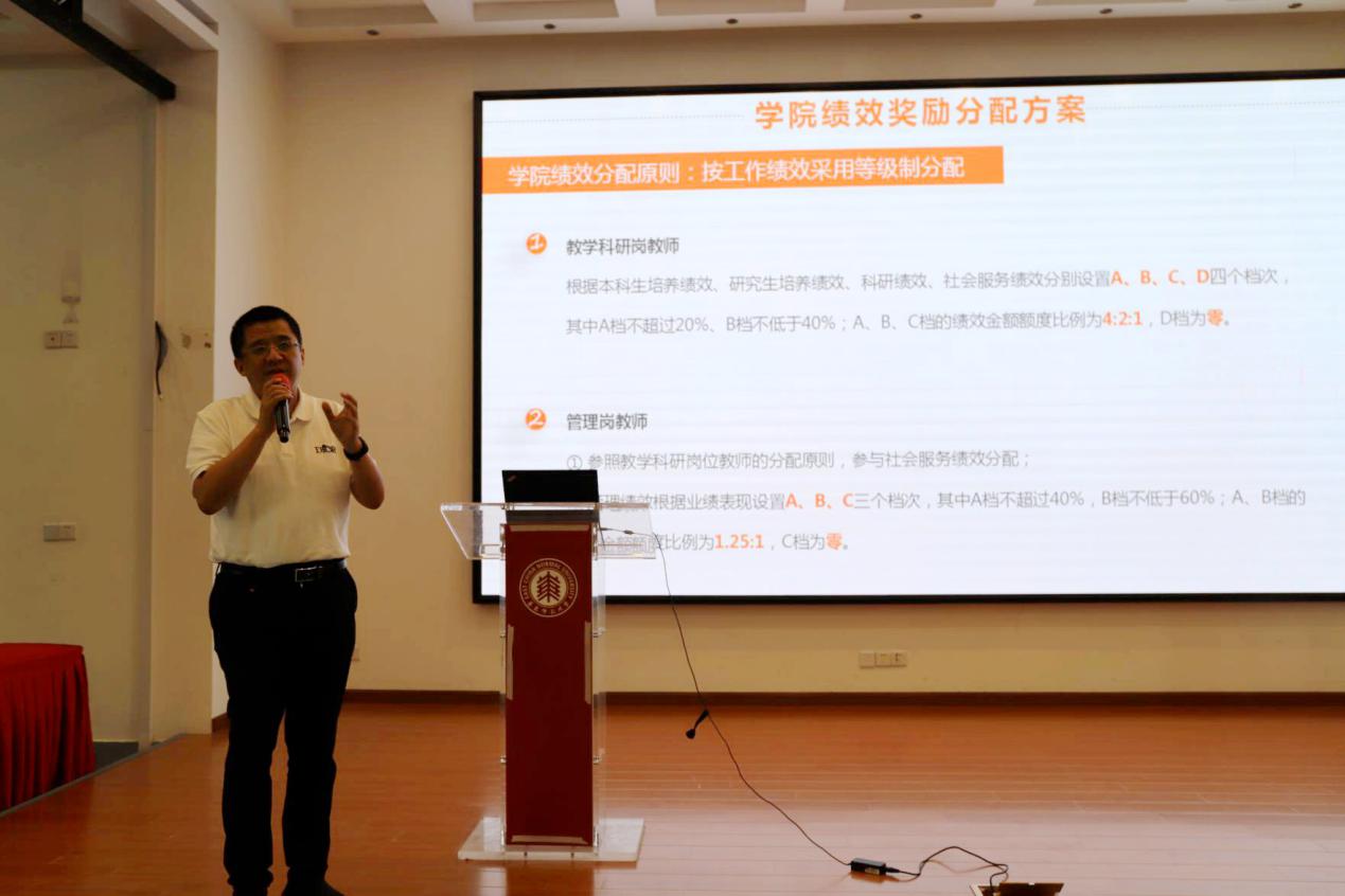 党委书记王长波、副院长贺樑介绍了2021年小说狂人 绩效奖励分配方案实施细则,副院长(主持工作)周爱民介绍了学院自筹绩效分配方案实施细则。细则制定过程中学院充分听取教师意见,并经与会教师现场投票,获高票通过。