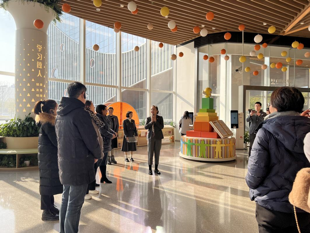 活动的第二部分,管理支部党员与本科生支部党员共同来到了苏州河畔的上海少年儿童图书馆(长风馆)参观,图书馆办公室主任吴昱和相关工作人员给予热情接待。