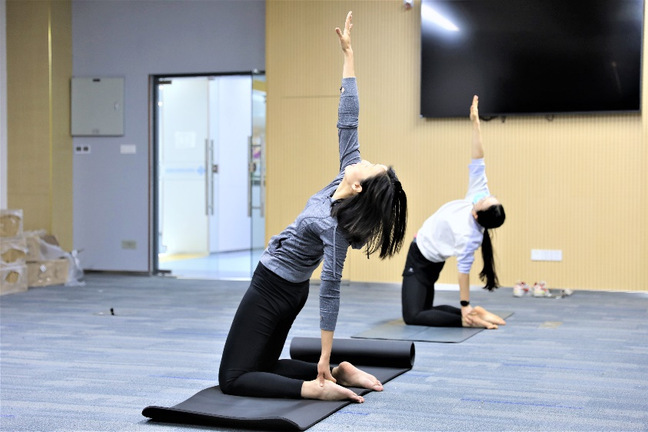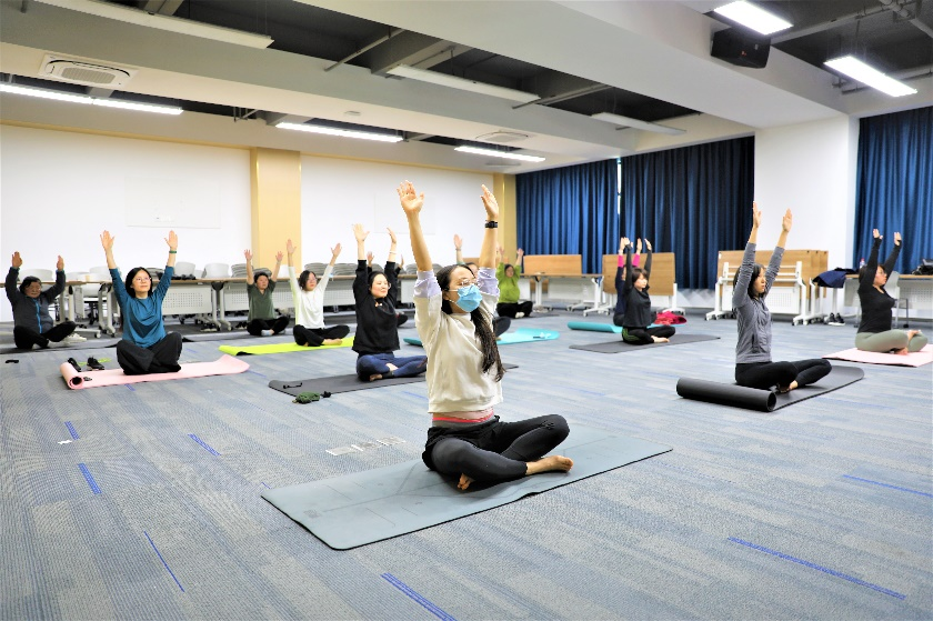 活动中,女教师们在赖老师的讲解下,通过音乐、体式、呼吸、冥想、休息术等方式,达到身心舒缓、身心放松、身心交互、身心平衡,瑜伽有助于调动体内细胞充分参与生命活动、提高神经系统运动功能、训练注意力、提升心智、减轻心理压力、消除肢体紧张、保持身体平衡等。辛勤工作后的压力在这一刻得到了最好的释放。