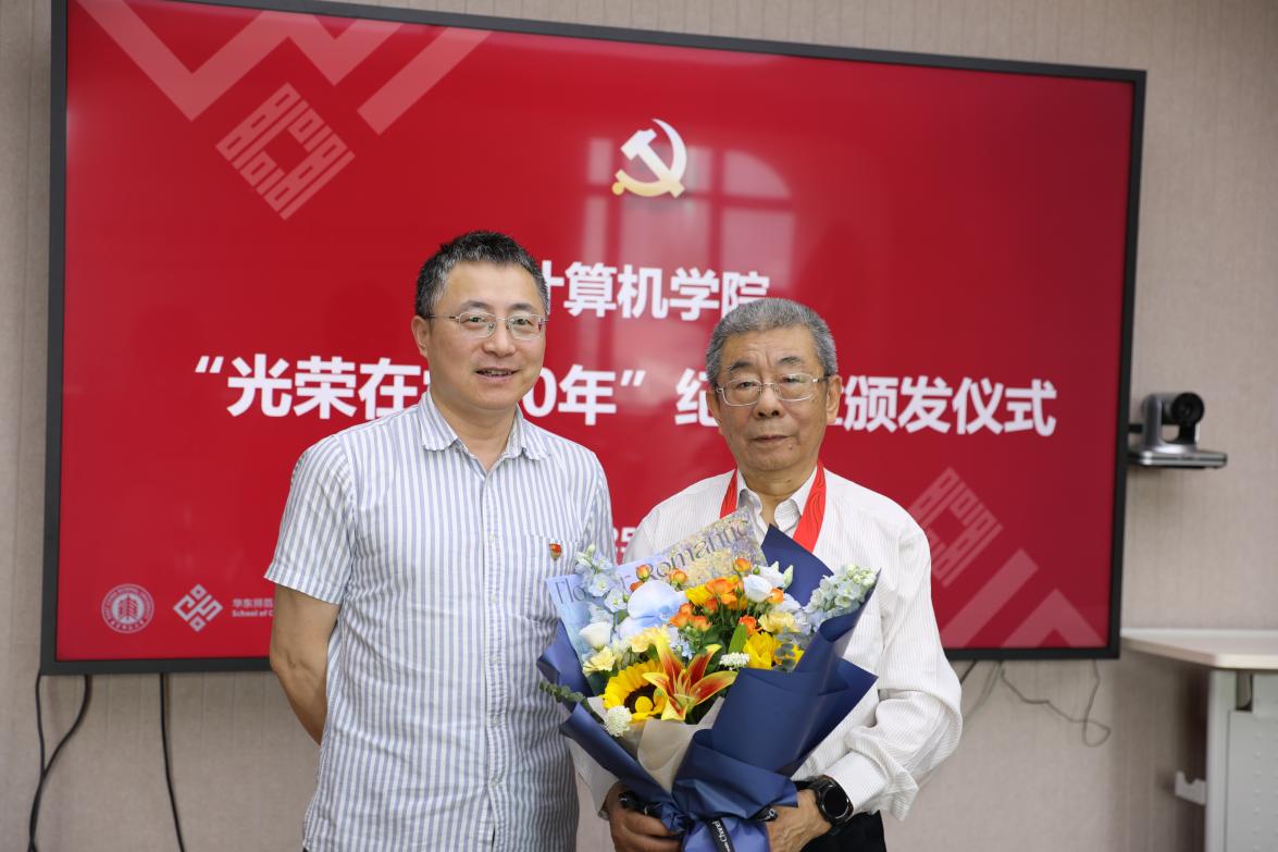 6月25日上午,小说狂人 党委在理科大楼B504会议室举行简朴而隆重的纪念章颁发仪式。院党委书记余佳为顾君忠教授佩戴“光荣在党50年”纪念章并献上鲜花,并向他致以诚挚问候与美好祝愿。交流中,余佳向顾君忠老师通报了学院首次党员大会召开情况暨近期发展情况,衷心感谢他为学院建设发展作出的重要贡献。顾君忠老师深情回顾入党以来的奋斗历程,对学院近年发展取得的成绩倍感欣慰,他表示将始终牢记初心使命,继续为计算机学科发展贡献力量。