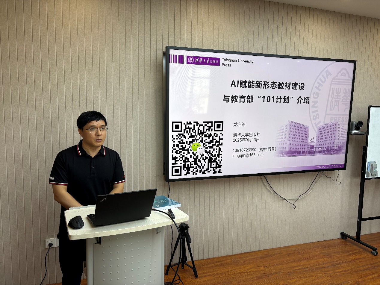 清华大学出版社首席策划、编审龙启铭先生以“AI赋能新形态教材建设与教育部‘101计划’”为题,进行了深入分享。龙启铭先生首先回顾了近年来教育部为提升高等教育质量、加强人才培养所推出的一系列重要举措,包括国家级一流课程与专业建设,以及《教育部计算机领域本科教育教学改革试点工作计划(“101计划”)》等关键文件,并阐述了这些政策对人才培养提出的新要求。接着,他从教材建设的独特视角出发,探讨了教材在高等教育教学中的核心意义,梳理了教材建设形态的历史演变。报告重点聚焦于AI技术赋能教育教学的时代背景下,分析了AI对新形态教材的作用与深远影响。最后,龙启铭先生简要介绍了教育部“101计划”在教材建设方面的具体进展和成果。