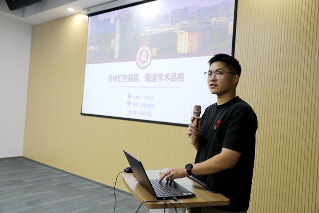 博士研究生第一党支部书记许俊杰结合自身工作实践,分享了研究生基层党组织建设的经验与成效。他详细介绍了支部严格落实“三会一课”制度的具体做法,以及依托“数字支教”项目开展多支部共建的创新实践案例。