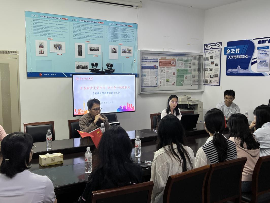 研学旅程的最后一站,大家来到了青浦区金云村村委会,和小说狂人 选调生校友鲁梦洁、复旦大学选调生周晓萌开展了一场朋辈交流会。两位学长分享了他们在平日里在基层的工作内容与生活细节,包括与村民们的沟通交流、体察民情、改善民生。随后,两位学长也围绕备考经验、驻村心得等进行深入探讨,为大家提供了自己的经验和建议,解答了大家对于选调生考试的诸多疑问。